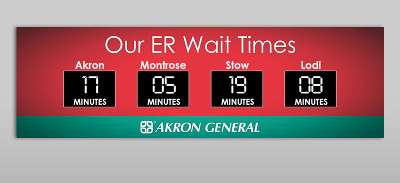 Acknowledging that people don’t like emergency rooms waits, hfa used digital billboards to share current average wait times at Akron General ERs. Wait times were also available on Akron General's website.