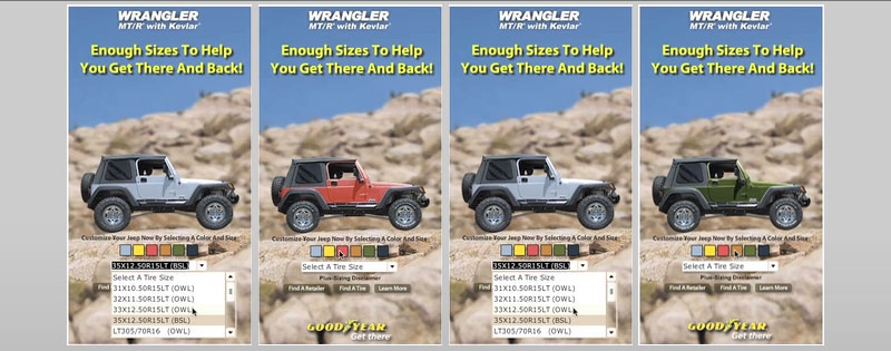 This interactive banner ad let visitors visualize their Jeep by changing the color and tire size of the vehicle.